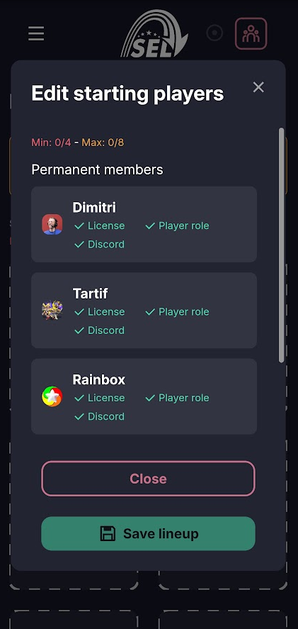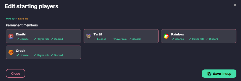 - Synchronisation obligatoire avec Discord : Chaque joueur inscrit dans le roster doit avoir son compte lié à Discord.