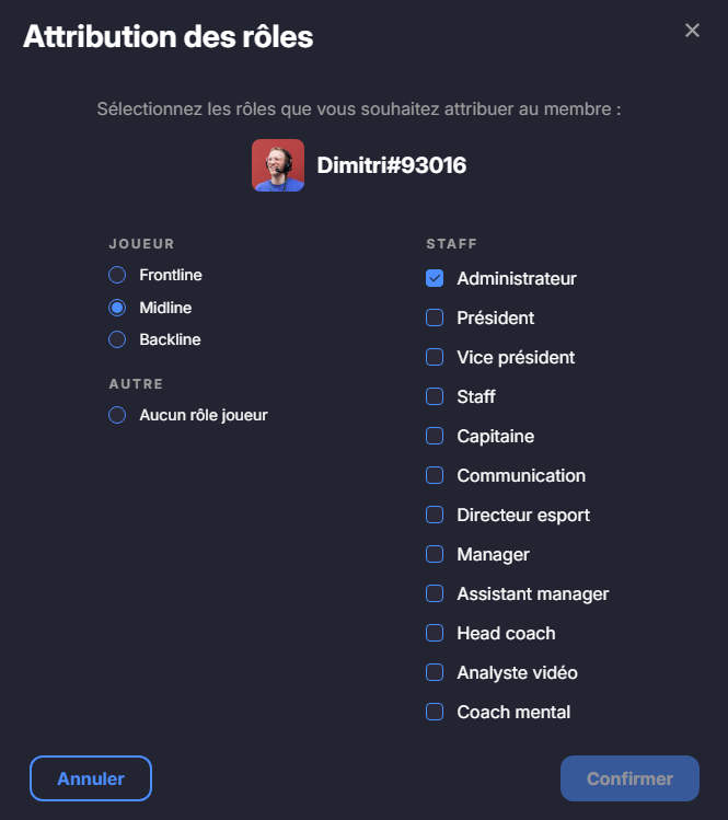 Un administrateur de l’équipe peut assigner des rôles au membres de son équipe.