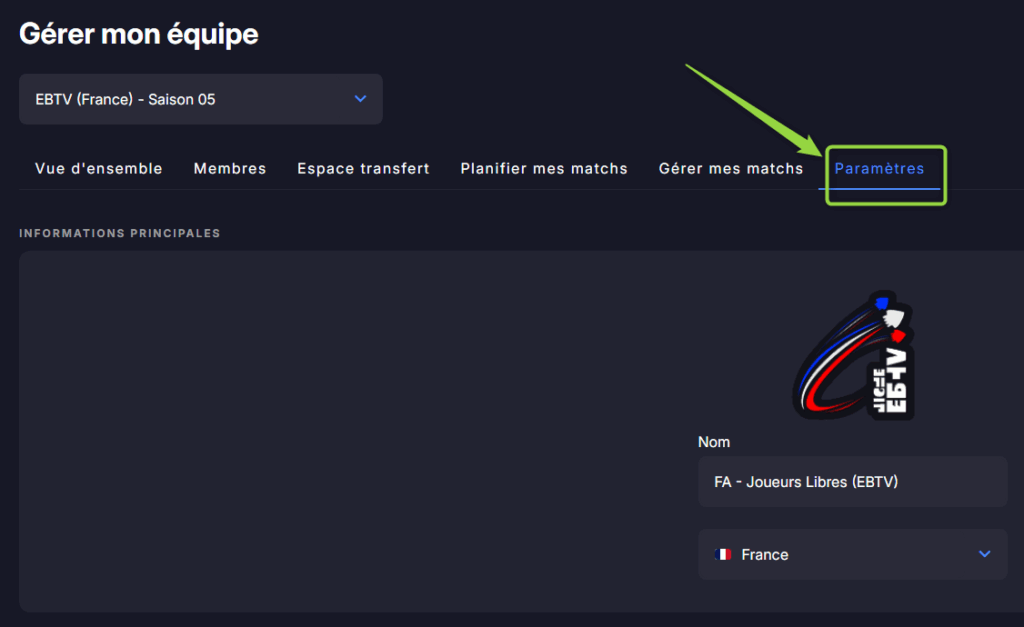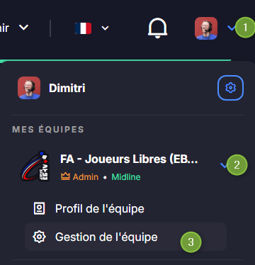 Un capitaine (administrateur) de l’équipe peut ouvrir le recrutement de l’équipe afin que ses coéquipiers puissent la rejoindre directement via la plateforme.